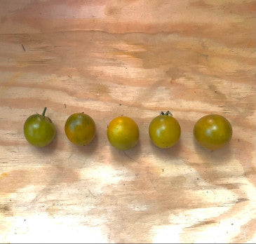 Emerald cherry heirloom tomato seeds Not a ton of information on this cherry tomato, so if you know something let me know. All the same this is an absolute making cherry tomato. It is a true green tomato that will get a yellowish blush when ripe. (OK full stop) dude if see another photo of a green tomato picked before it is ripe I am going to puke. Sorry but just stop doing it! This cherry also with tend to have a bit of a pinkish blush on some of the fruits, those are the ones you save for yourself. The flavor is sweet and tart with hints of stone fruits. The 1” fruits are amazing productive. These cherry tomatoes are great with some olive oil and garlic on pasta. about 10 seeds