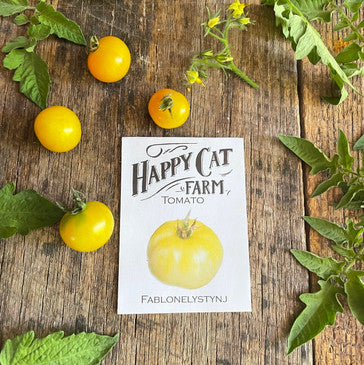 There is no other tomato in my collection that I would like to know more about its history than this tomato, I mean Fablonelstynj, who puts a j on the end of a word? Really. Whatever it means it must translate to #@*&ing cool. The fruits look like mini yellow Brandywine's but are cherry sized. The flavor is buttery and fresh with a hint of grassy robustness. About 10 sustainable seeds.