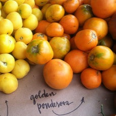 Golden Ponderosa is on of our backbone tomatoes. This heirloom from Virginia was first introduced in 1914 by Peter Henderson This 5” cream sickle orange oval has it all, taste, looks, and grows so like a champ. It is a big seller at markets because it tastes so gosh darn good! Big production and great disease resistance from a solid fruited blemish free happy tomato. This is the life! About 10 sustainable seeds.
